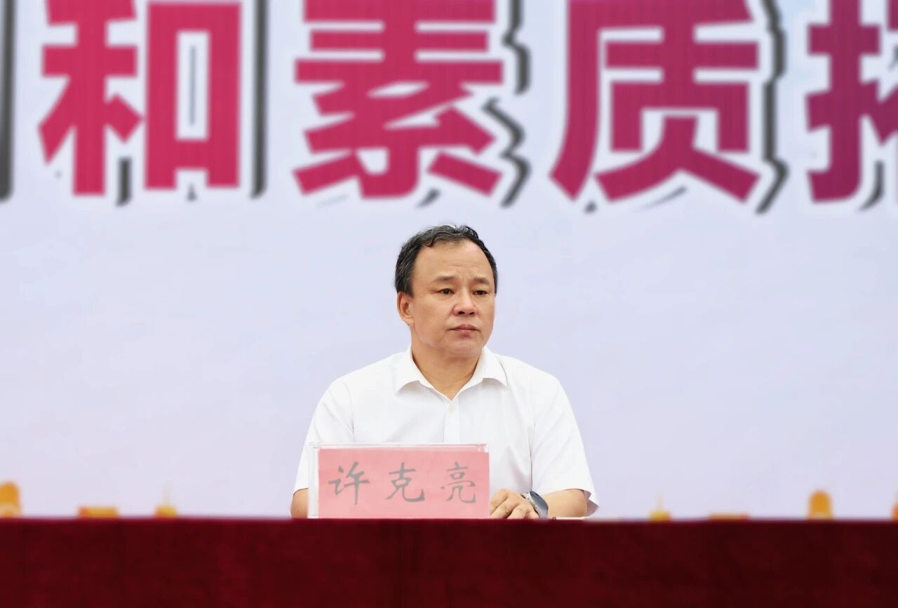 党委书记许克亮发表讲话,肯定了此次素质拓展训练中的成果,总结了学院建院以来取得的成绩,向全体学生提出几点希望:一要以“国之大者”为志,深植家国情怀。希望学生们将个人所学与国家所需紧密结合,将职业理想融入时代洪流,以精湛技能守护实业根基,以工匠精神助力强国建设。二要以“过硬本领”为基,持续锤炼专业素养。希望学生们充分借助学院先进的实训条件与校企合作平台,以“十年磨一剑”的定力沉潜钻研,以“庖丁解牛”的匠心精益求精。三要以“奋楫正心”为要,锤炼刚健品格。希望学生们在学习生活中,既专注技能提升,也重视身心修养;既追求技术精进,也培养团队协作和责任担当。成长为有理想、敢担当、能吃苦、肯奋斗的新时代卓越技术人才。