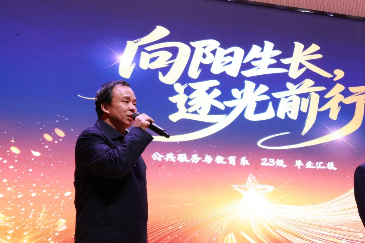 青春作序,梦想启航。12月24日下午,冀南技师学院公共服务与教育系 “向阳生长,逐光前行”23级毕业汇报演出暨双选会在国际交流中心二楼大报告厅圆满举行。学院领导班子成员,校企合作单位代表,全体师生、家长代表齐聚一堂,共赏青春盛宴,共话就业未来。