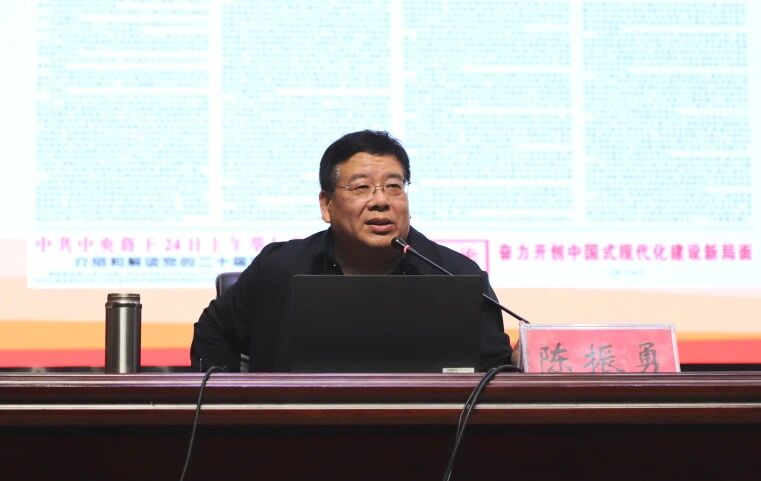 陈振勇教授以《确保基本实现社会主义现代化取得决定性进展——学习党的二十届四中全会精神》为题,围绕全会精神的核心要义以及“十五五”时期经济社会发展的指导思想等内容展开解读,同时结合学院办学实际,深入阐释了“十五五”规划纲要中关于教育事业的具体部署、重点任务与实践路径,引导全体教职工深刻领会全会精神的丰富内涵,切实把思想和行动统一到党中央决策部署上来。
