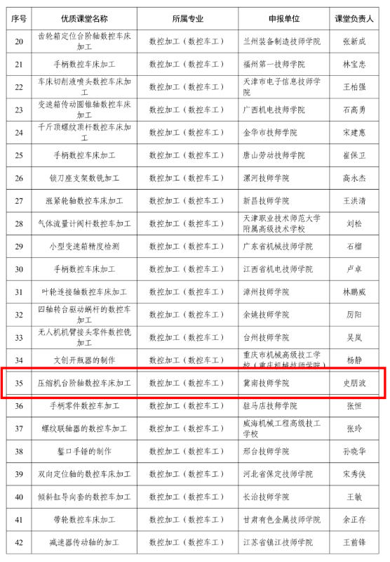 近日,人力资源社会保障部办公厅发布《关于公布技工院校工学一体化技能人才培养模式优质课堂名单的通知》(人社厅函〔2025〕183号),冀南技师学院数控加工(数控车工)专业申报的“压缩机台阶轴数控车床加工”课堂,凭借其“贴近产业、任务驱动、教学做一体”的鲜明特色,在院校申报、省级遴选和部级统筹的层层评选中脱颖而出,成功入选全国369个国家级优质课堂之一,获得了专家组的一致认可,展现了学院在推进工学一体化教学改革方面的扎实成效与创新实力。