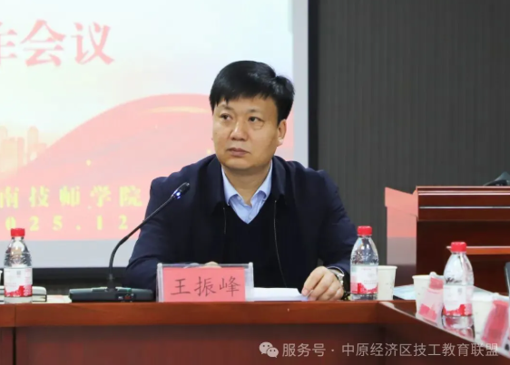 在冀南技师学院建院五周年之际,为充分发挥中原经济区技工教育联盟引领作用,凝聚联盟合力,深化产教融合,赋能技工教育高质量发展,12月31日,中原区技工教育联盟2025年理事会工作会议在冀南技师学院隆重召开。邯郸市人力资源和社会保障局四级调研员任爱军、冀南技师学院领导班子成员、联盟副理事长单位代表、专家委员会代表、新申请加入联盟的副理事长单位和理事单位代表50余人参会。会议由联盟秘书长、冀南技师学院副院长王振峰主持。