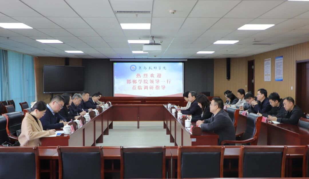 11月13日,邯郸学院党委书记姜瑞林、校长王宪明、副校长李燕及相关部门负责人一行到我院考察交流。我院党委书记许克亮、院长田青热情接待,副院长刘芳、陈建华以及相关部门负责人陪同考察,一行人在国际交流中心516会议室召开交流会。交流会上,党委书记许克亮对邯郸学院领导一行的到来表示热烈欢迎,并详细介绍了我院在专业建设、赛教融合、招生就业及办学特色等方面的发展成果。许克亮书记指出,邯郸学院作为地方综合性本科院...