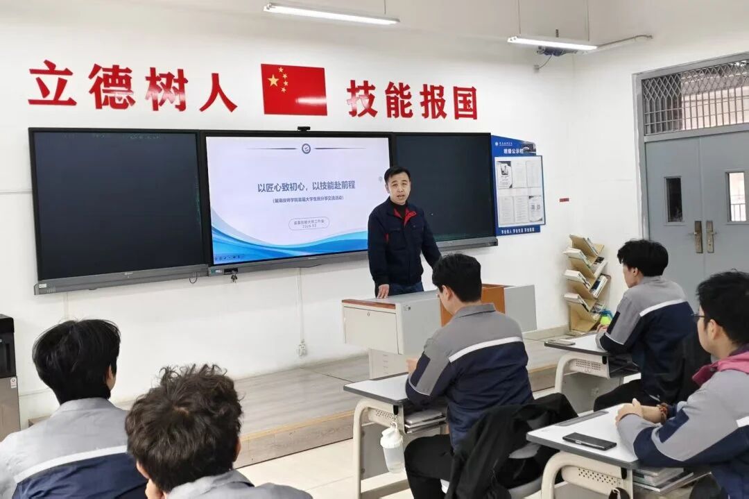 为厚植工匠文化,激发大学生凭借技能成长成才、以技能报效国家的热情。近日,孟磊(省级)技能大师工作室联合装备制造工程系、智能控制工程系,组织开展了以“坚持初心,锤炼过硬本领”为主题的首届大学生班分享交流活动。活动伊始,技能大师工作室领办人孟磊老师将二十余载的职业成长之路、技术创新之悟、育人育才之心倾囊相授,为同学们带来了一场兼具深度与温度的精神盛宴。在分享交流中,孟磊老师深入解读工匠精神的内涵—...